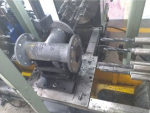 3、減少人工:傳統(tǒng)鉆孔加工需要使用磨具一個孔一個孔的加工,浪費時間,本機床可以同時加工三個法蘭面的多個孔,并且可以一位員工同時操作多臺機床,從而提。